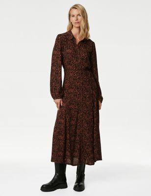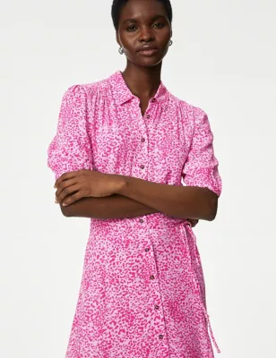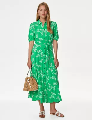 Printed Belted Midaxi Shirt Dress