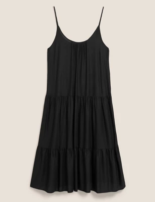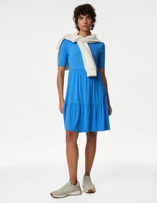 Jersey Round Neck Knee Length Tiered Dress