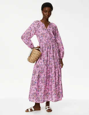 Pure Cotton Printed Midaxi T-Shirt Dress