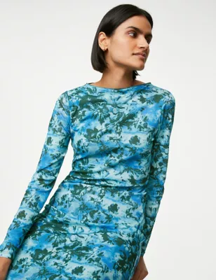 Mesh Jersey Printed Midi Column Dress