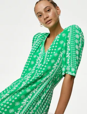 Jersey Printed V-Neck Mini Smock Dress