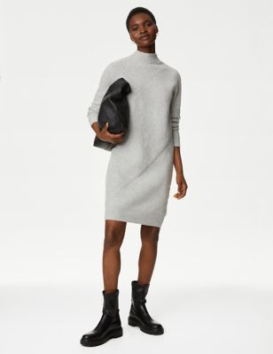 Knitted Ribbed Funnel Neck Mini Dress