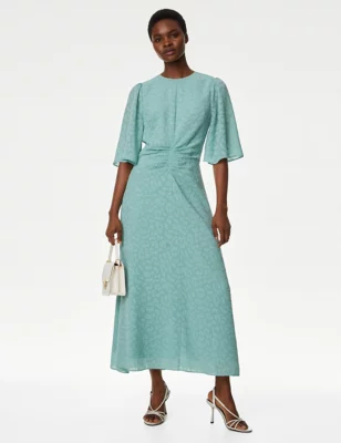 V-Neck Ruched Midaxi Waisted Dress