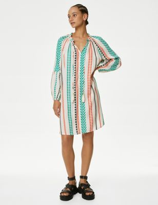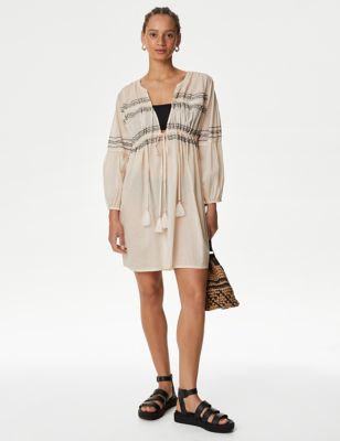 Pure Cotton Embroidered V-Neck Beach Dress