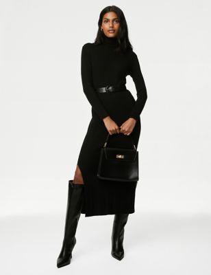 Knitted Ribbed Roll Neck Midi Dress