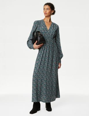 Printed V-Neck Midaxi Tea Dress