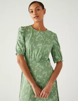 Printed Round Neck Midaxi Tea Dress