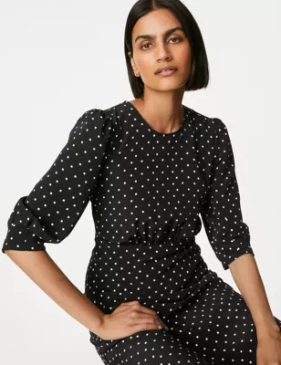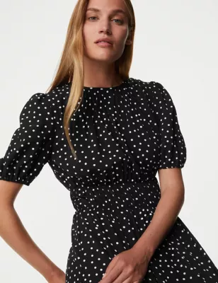 Polka Dot Textured Mini Smock Dress