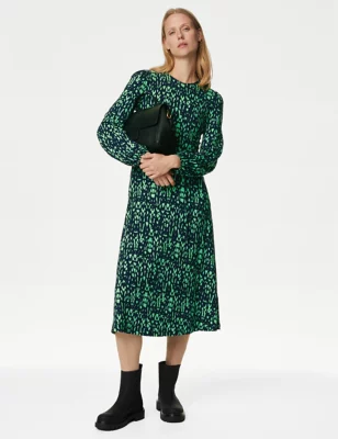Jersey Printed Funnel Neck Midi Dress