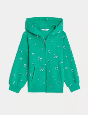 Cotton Rich Flower Embroidered Zip Hoodie (3-13 Yrs)