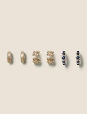 3 Pack Semi Precious Hoop Earrings