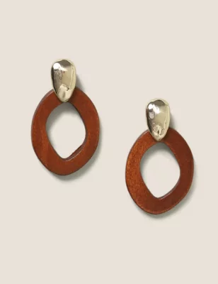 Wooden Effect Circle Drop Earrings