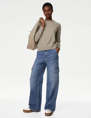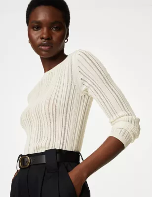 Cotton Rich Ribbed Jumper With Wool