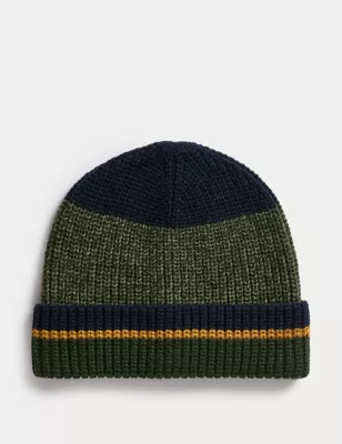 Wool Blend Striped Beanie Hat
