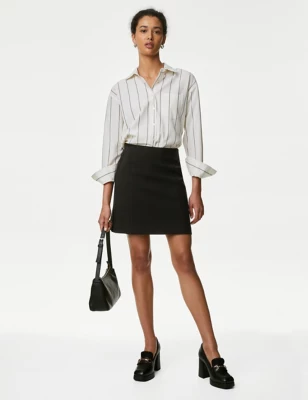 Pinstriped Mini A-Line Tailored Skirt
