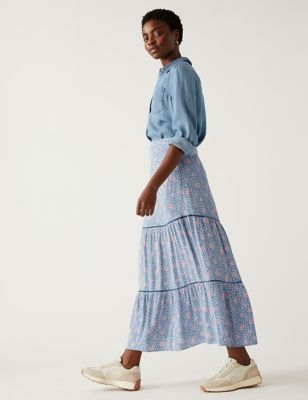 Printed Ruffle Midi Tiered Skirt