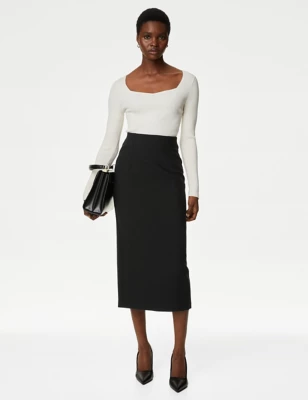 Satin Split Back Midaxi Column Skirt