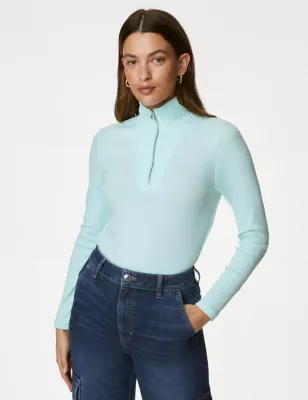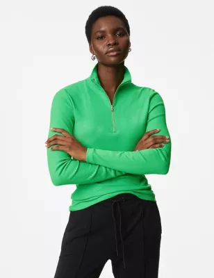 Cotton Rich Ribbed Half Zip Top