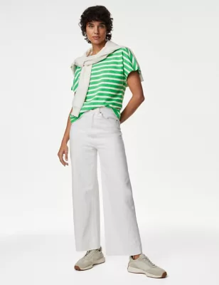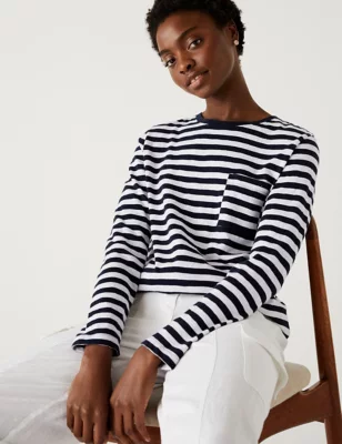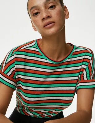Pure Cotton Striped Crew Neck Top
