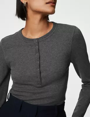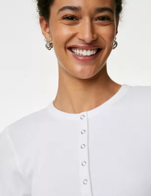 Cotton Rich Ribbed Henley Top