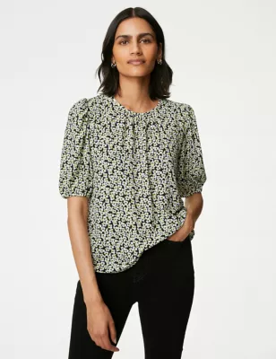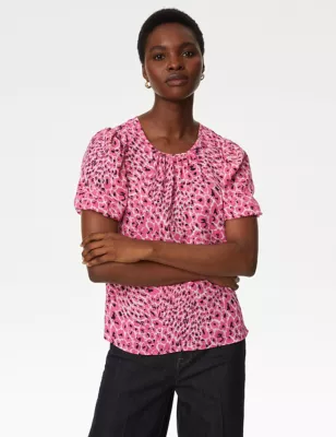 Printed Pleated Top