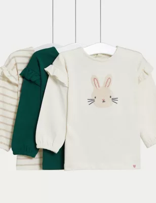 3pk Pure Cotton Bunny & Striped Tops (0-3 Yrs)