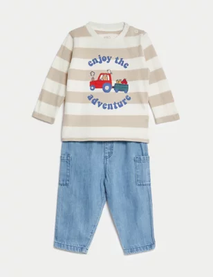 2pc Cotton Rich Striped Outfit (0-3 Yrs)