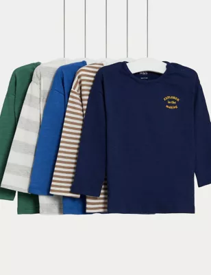 5pk Pure Cotton Striped & Plain Tops (0-3 Yrs)
