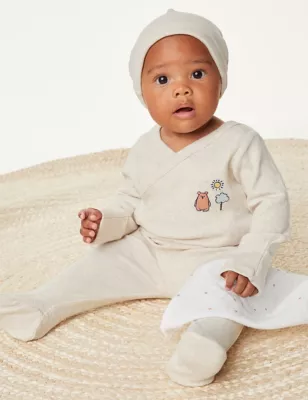 Cotton Rich Velour Elephant Sleepsuit (7lbs-1 Yrs)