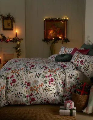 Pure Cotton Sateen Christmas Floral Bedding Set