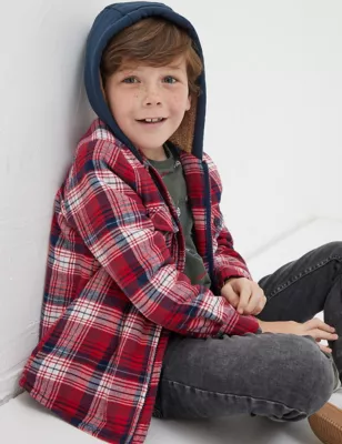 Pure Cotton Checked Hooded Shacket (3-13 Yrs)
