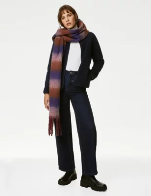 Checked Relaxed Longline Coat With Wool