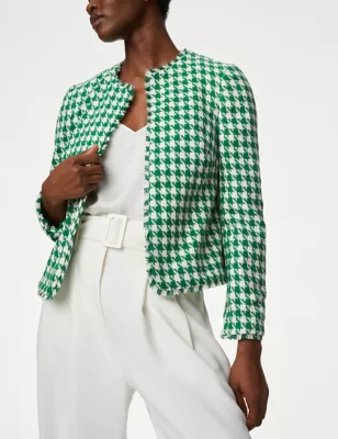 Tweed Collarless Relaxed Short Jacket