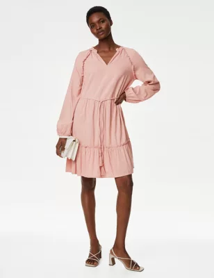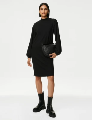 Jersey Round Neck Tie Waist Midi Tea Dress