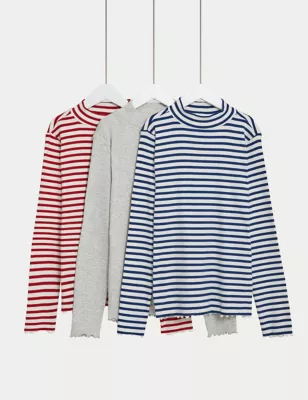 3pk Cotton Rich Striped Tops (6-16 Yrs)