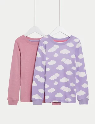2pk Thermal Cotton Blend Cloud & Plain Tops (2-14 Yrs)