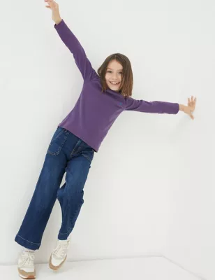 Relaxed Cotton Rich Wide Leg Trousers (3-13 Yrs)