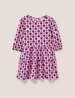 Pure Cotton Heart Print Tiered Dress (3-10 Yrs)