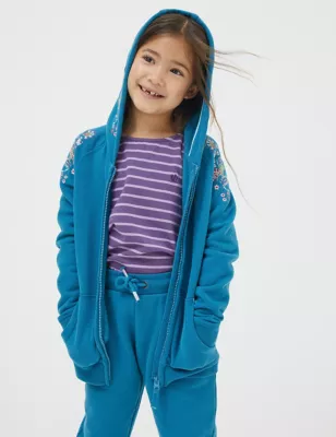 Cotton Rich Flower Embroidered Zip Hoodie (3-13 Yrs)