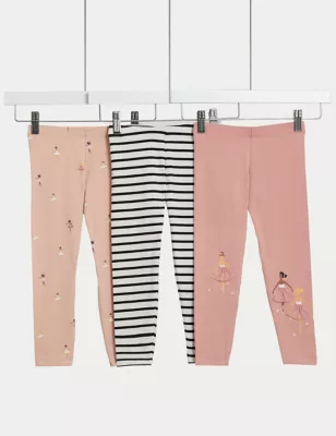 3pk Cotton Rich Ballet Leggings (2-8 Yrs)