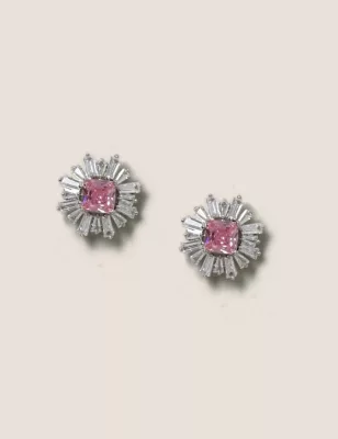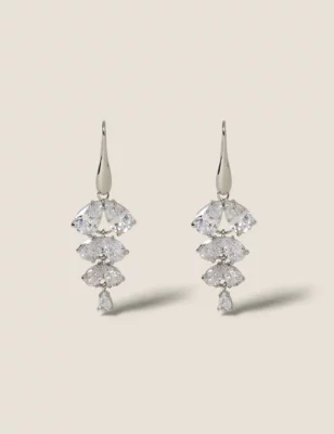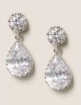 Platinum Plated Cubic Zirconia Pear Drop Earrings