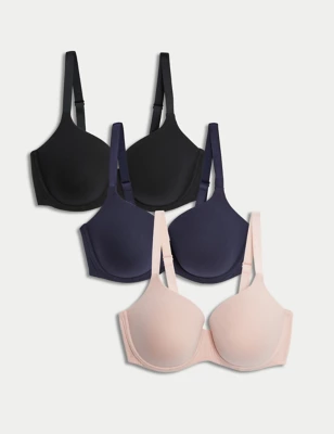 3pk Cotton Non Wired Full Cup T-Shirt Bra A-E