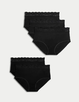5pk Cotton Lycra™ & Lace High Rise Shorts