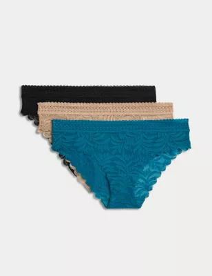 3pk Flexifit™ Lace Brazilian Knickers
