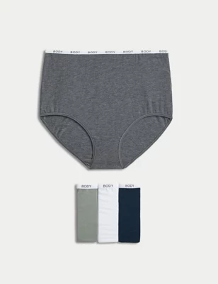 3pk Cotton Rich High Waisted Midi Knickers