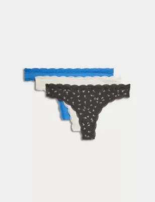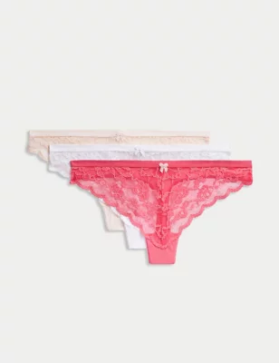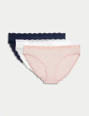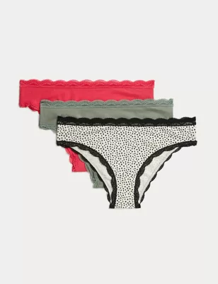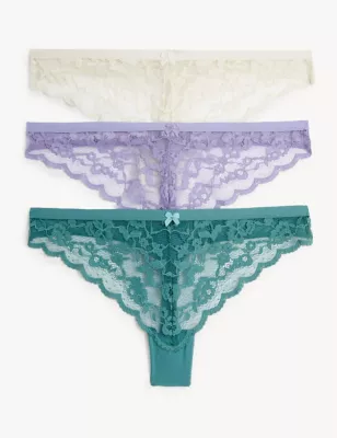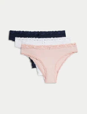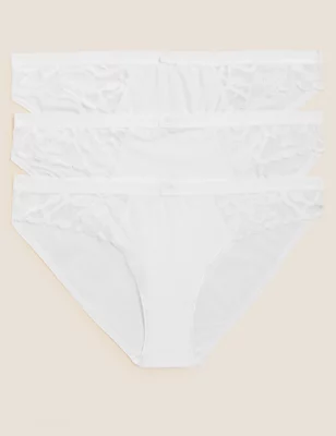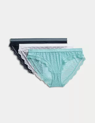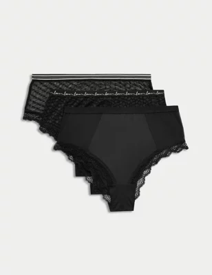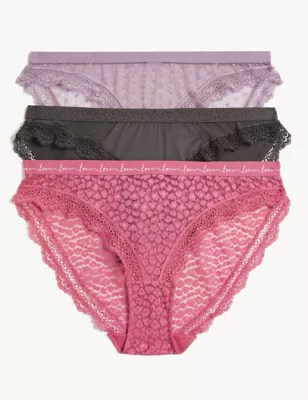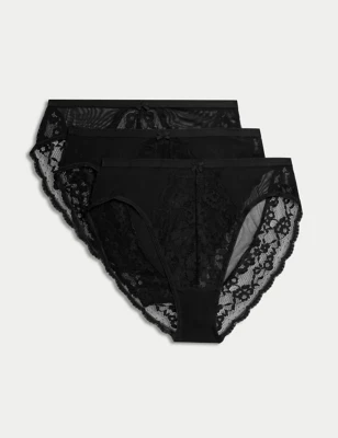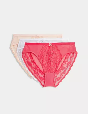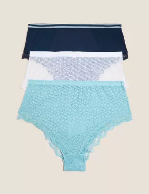 3pk Lace & Mesh High Waisted Brazilian Knickers