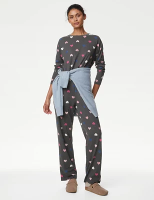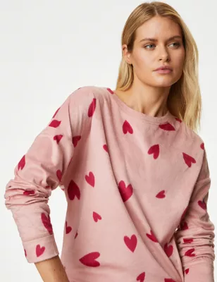 Fleece Heart Print Pyjama Set