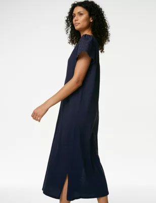 Pure Cotton Broderie Trim Long Nightdress