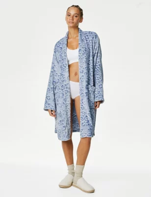Fleece Animal Print Short Dressing Gown