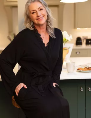Jersey Lace Trim Long Dressing Gown